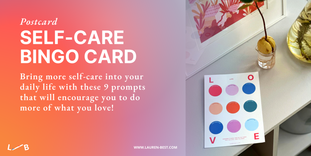 Use this 5.25” x 7.25” [physical paper] bingo card as a visual reminder to prioritize more of what you truly love by making time for the things that you love and help you grow.